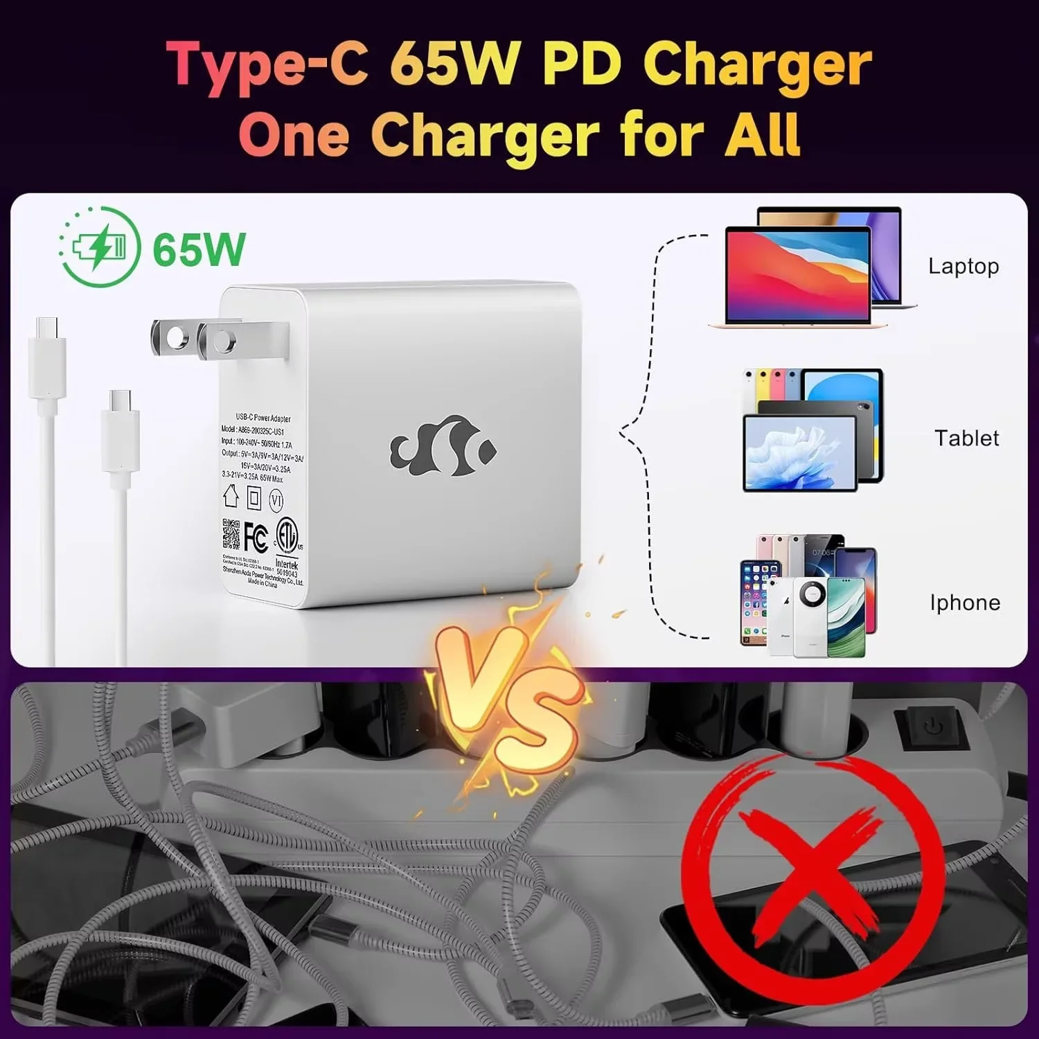 - 【Type-C 65W PD Fast Charger Included】Enjoy the convenience of a 65W PD fast charger and a 6.56ft USB-C to USB-C cable. Charge for 15 minutes to power your device for 2 hours, making travel easier. This versatile charger can also power your iPad, phone, camera, and more, reducing charging anxiety.