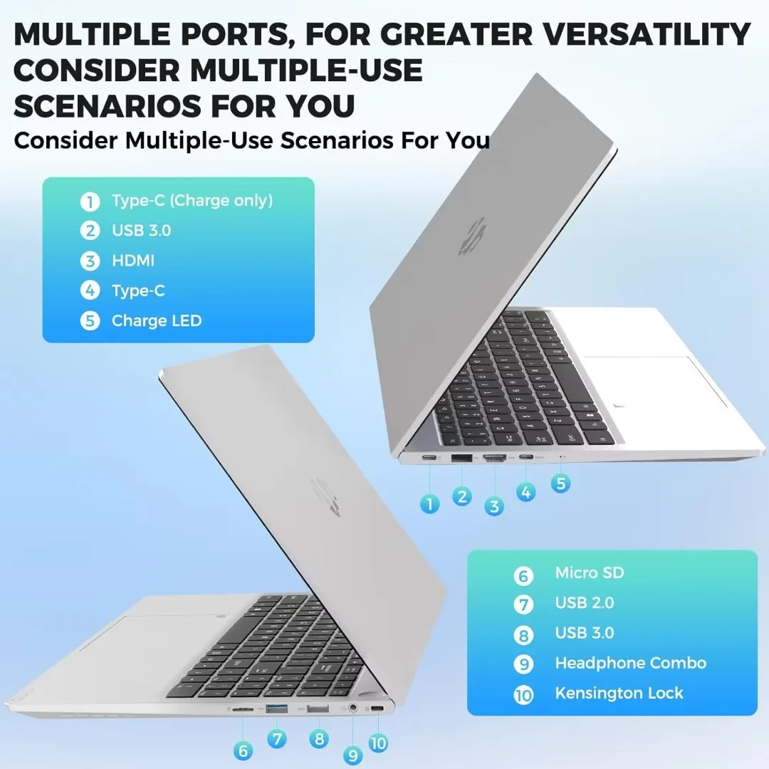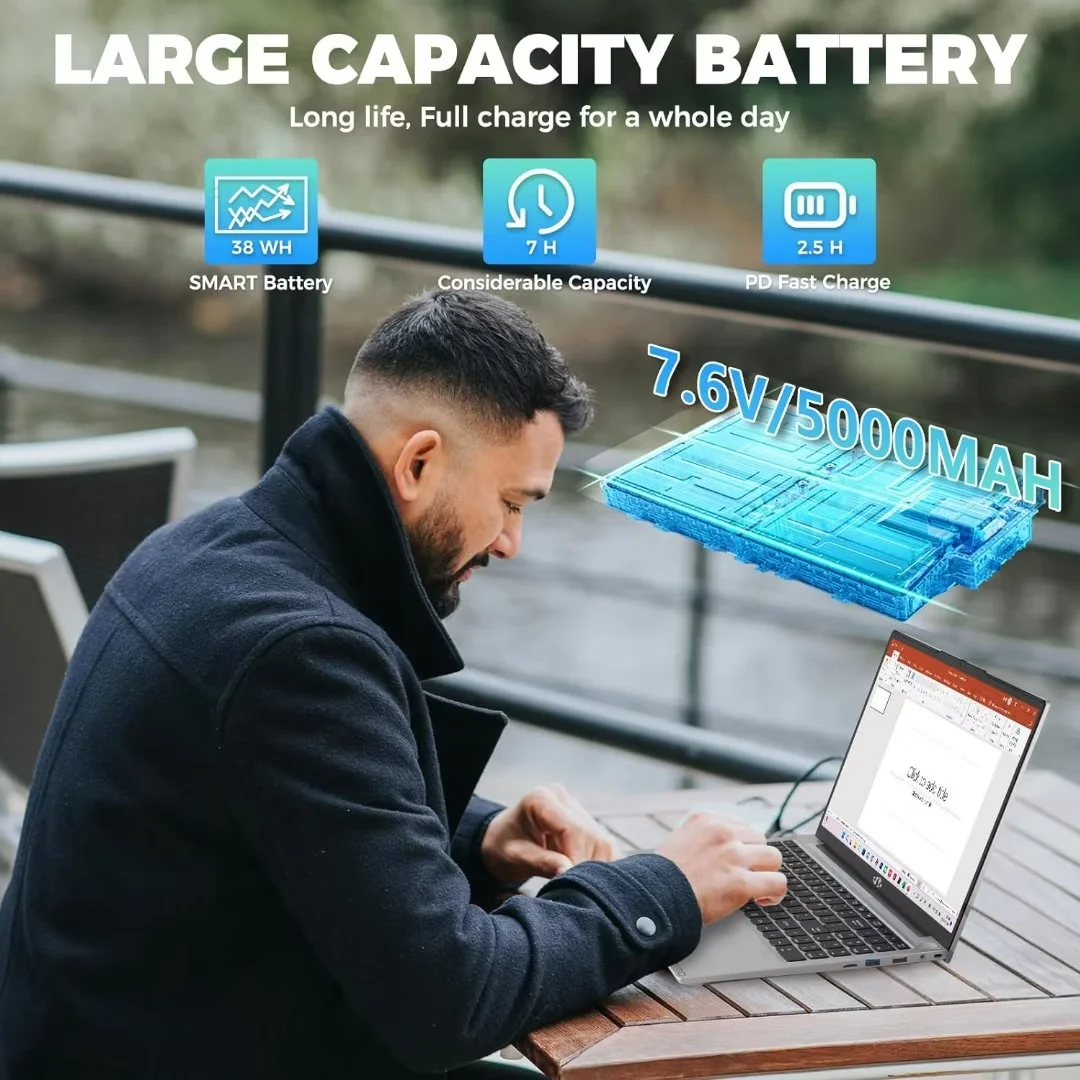 Intel 12th generation Alder Lake-N100, Bring you an appealing and vibrant 15.6 display that delivers stunning color accuracy and detailed image quality. It also helps reduce the onset of eye blemishes from long hours at work, thanks to its eye-friendly screen that delivers great image quality and saves you from discomfort.