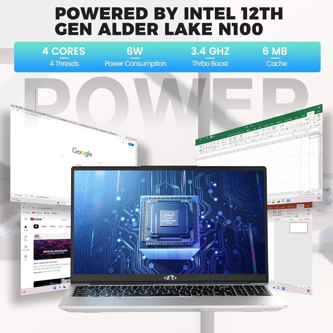 Powerful Processor: Intel 12th generation Alder Lake N100 Quad-Core processor (up to 3.4GHz) for lightning-fast speeds and exceptional power.