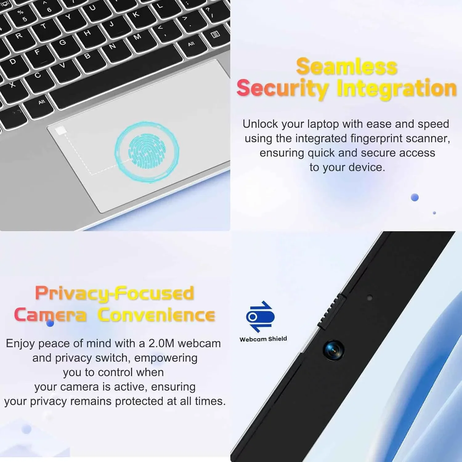 • Easy Connectivity: laptop offers versatile ports, including USB 3.0 and a full-function Type-C, along with additional features like an M2.0 privacy camera, a backlit keyboard, and a fingerprint sensor for increased convenience and productivity.