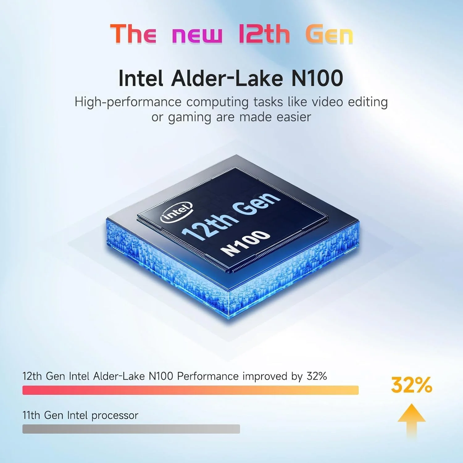 • High Performance: Powered by the 12th Gen Intel Alder Lake-N100 processor with 4 cores and 4 threads, laptop delivers up to 3.4GHz performance. The Nimo laptop’s advanced Gracemont core design ensures 45% better efficiency, providing smooth multitasking for work, study, and entertainment.