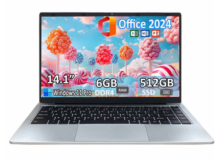 14.1″ Student Laptop Computer Windows 11 Pro Office 2024 Privacy camera 6GB RAM 512GB SSD 2.6 GHz WiFi5 BT 4.2 Lightweight Business Laptop Computer