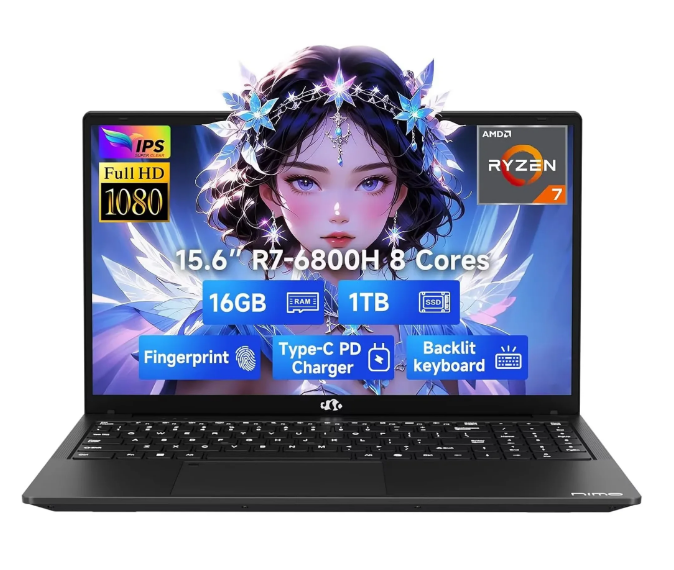 15.6″ IPS FHD-Gaming-Laptop 8 Cores AMD Ryzen 7 6800H 16GB DDR5 RAM 1TB SSD (Beat Intel i7-12700H Up to 4.7GHz) AMD Radeon 680M GPU-Computer with 100W Type-C Backlit Keyboard Fingerprint