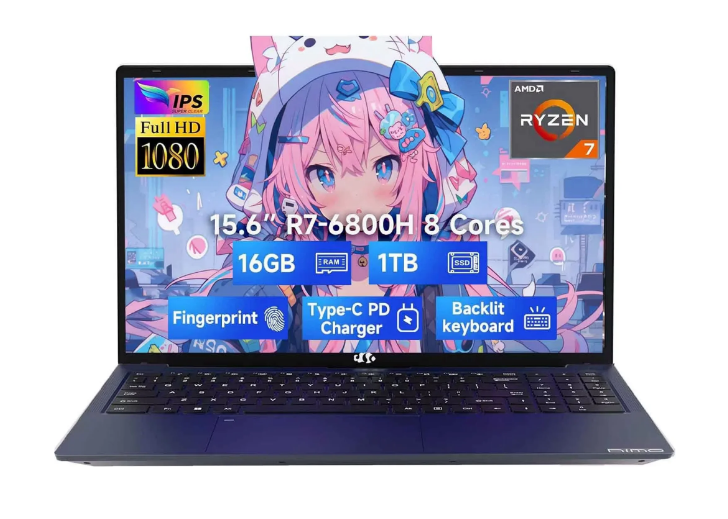 15.6″ IPS FHD-Gaming-Laptop 8 Cores AMD Ryzen 7 6800H 16GB DDR5 RAM 1TB SSD (Beat Intel i7-12700H Up to 4.7GHz) AMD Radeon 680M GPU-Computer with 100W Type-C Backlit Keyboard Fingerprint