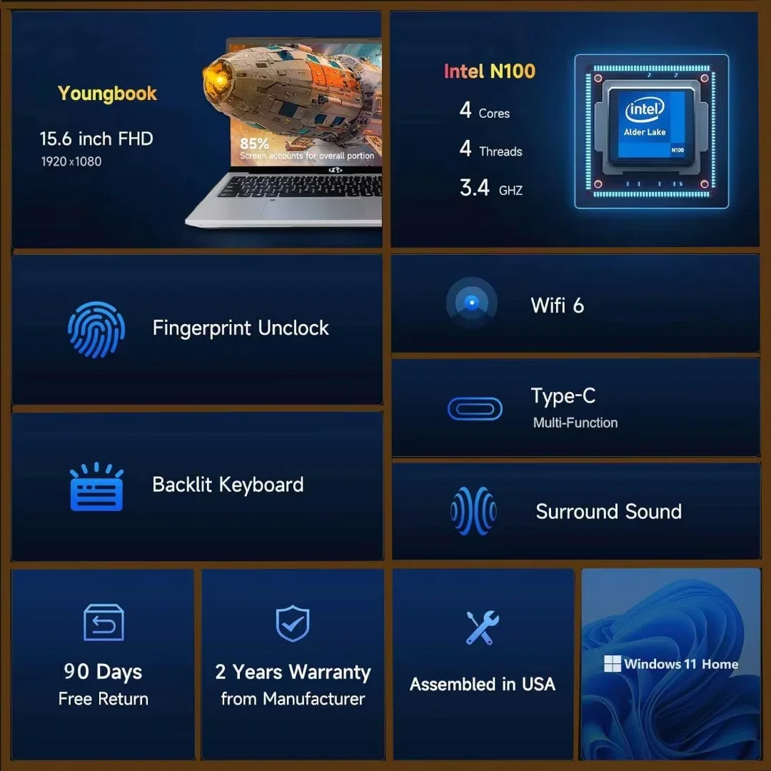 - 【Effortless Speed, Seamless Performance】Powered by the cutting-edge Intel Alder Lake-N100 12th Gen processor at 3.4GHz, the laptop redefines speed and efficiency. Experience seamless and responsive workflow across diverse usage scenarios, from intensive workloads to multimedia entertainment